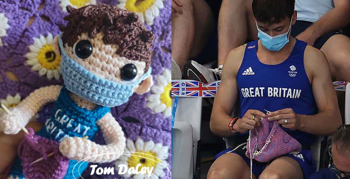 El muñeco de Tom con todo y su uniforme olímpico, cubre bocas y gorro que tejía mientras se encontraba en las gradas fue compartido a los más de 800mil seguidores de Daley en suscuenta de Instagram madewithlovebytomdaly, donde clavadista comparte sus propias creaciones croché.