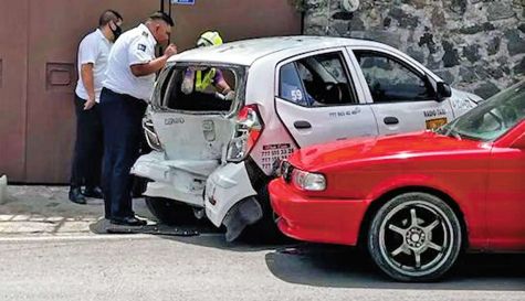El accidente ocurrió a las 15:30 horas de ayer cuando el conductor del taxi I10 estaba estacionado en la orilla de la Avenida Palmira, cerca de las oficinas de la Secretaría de Desarrollo Sustentable, donde fue impactado por una camioneta Nissan, color blanco, la cual se dio a la fuga rumbo al Centro.