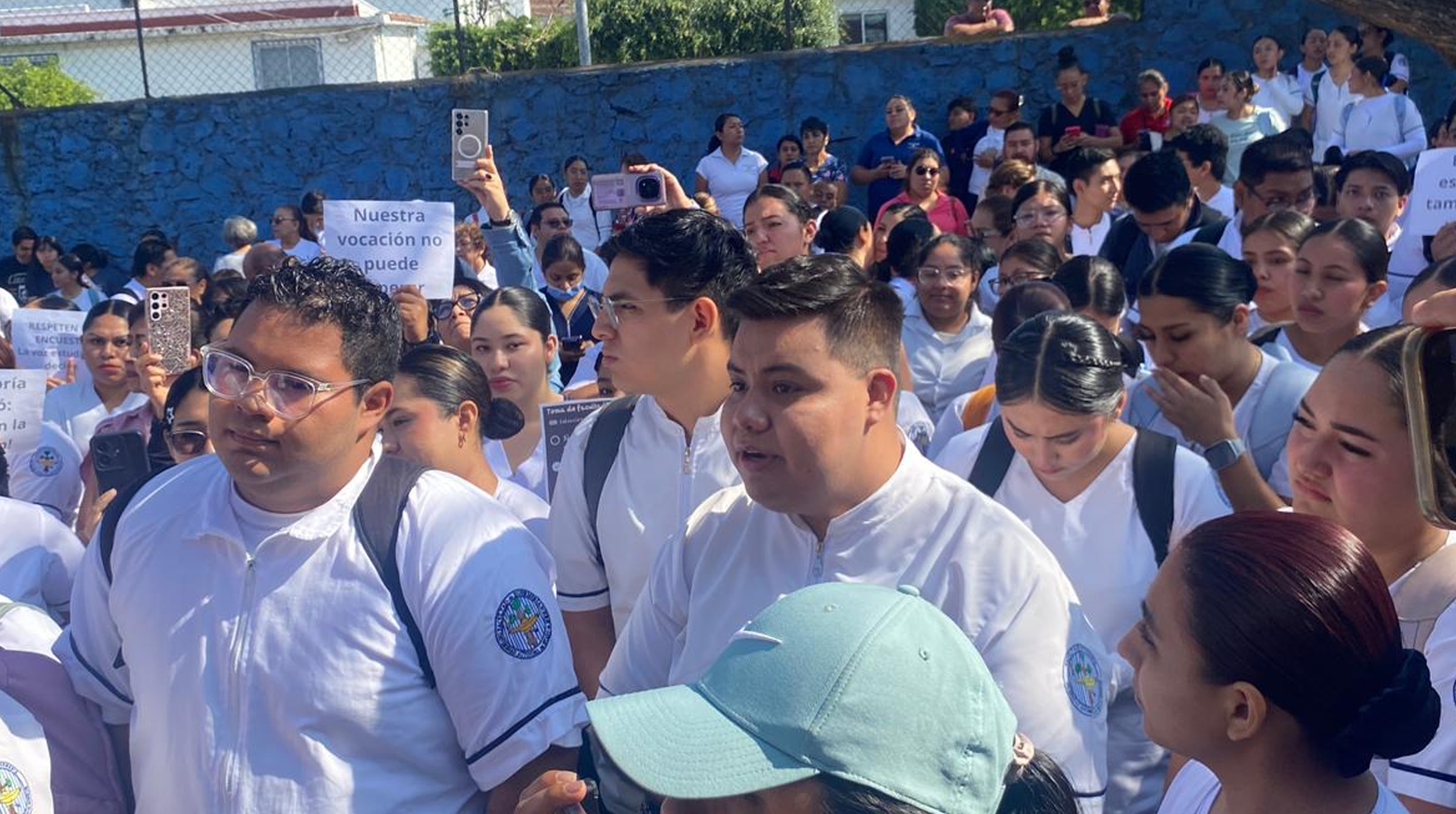 Este lunes, con el regreso a clases tras el periodo vacacional de Semana Santa, estudiantes de la Facultad de Enfermería acudieron a las instalaciones para exigir la reapertura del plantel y la reanudación de actividades académicas, luego de varias semanas sin clases.