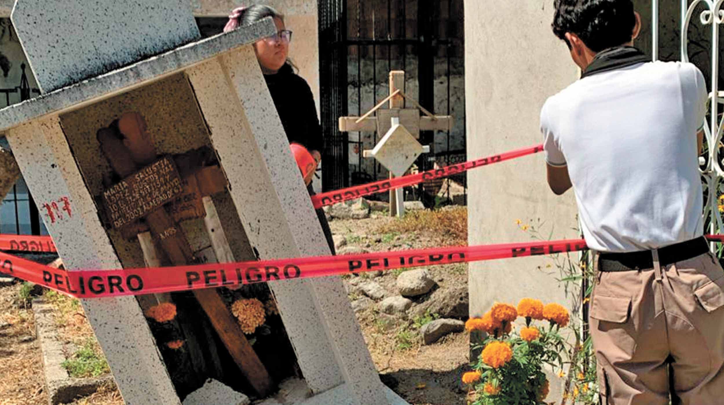 Con motivo de la tradición de Día de Muertos, personal de la Coordinación Protección Civil reforzó los trabajos para delimitar las tumbas que representan riesgo, a fin de evitar accidentes entre los visitantes que se prevé acudan con mayor afluencia los días 1 y 2 de noviembre.