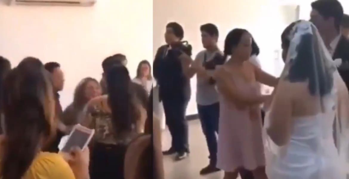 Al final del video algunos invitados logran controlar a la mujer y la sacan del lugar.