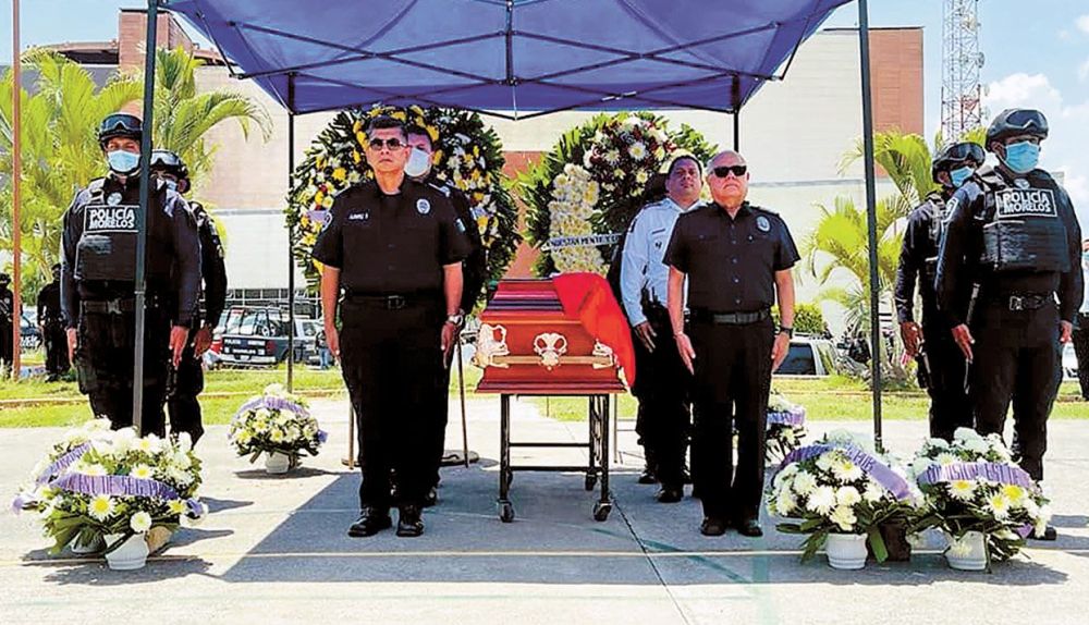 Temixco.- Uno de los dos policías asesinados el jueves pasado en Cuautla fue despedido en una ceremonia luctuosa realizada en las instalaciones de Torre Morelos de la Policía.
