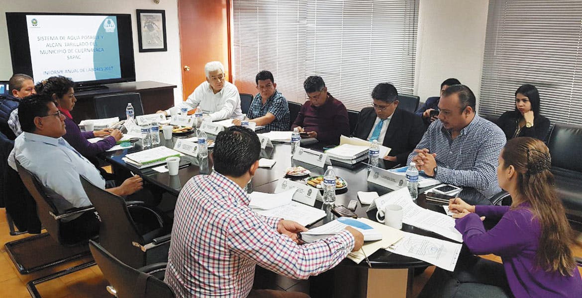 CUERNAVACA, MORELOS.- Para transpartentar la gestión al frente del Sistema de Agua Potable y Alcantarillado de Cuernavaca (SAPAC), su director, José Pérez Torres, presentó el Cuarto Informe Trimestral  y Anual de Labores 2017, ante los integrantes del máximo órgano rector de dicho organismo.