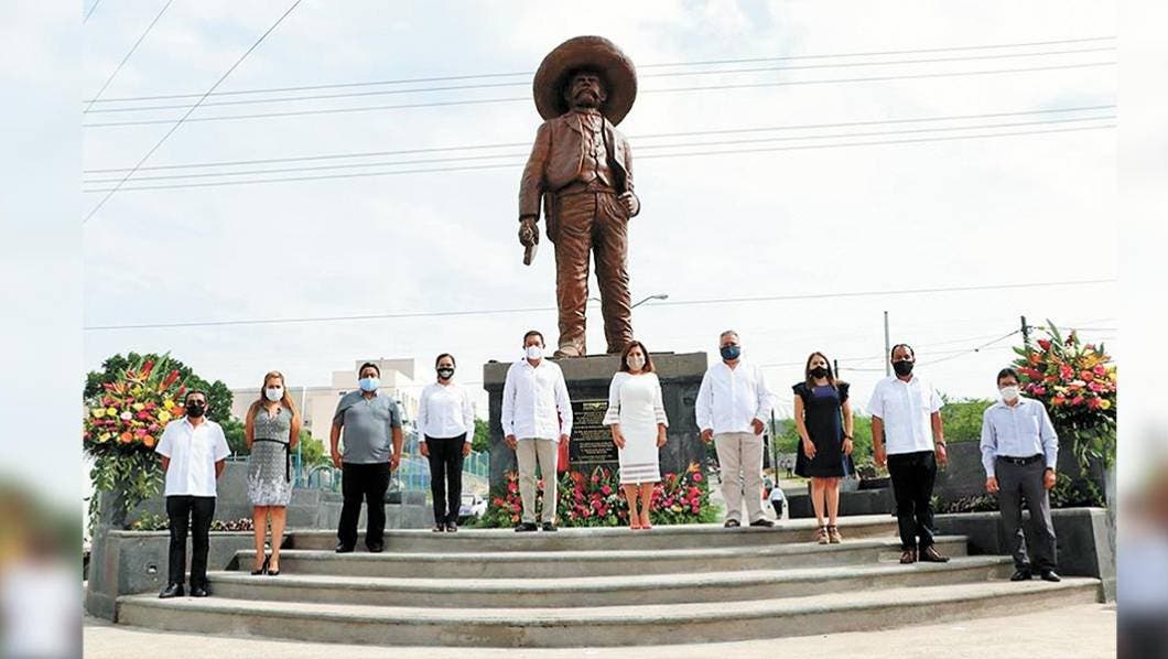 La estatua fue develada por los integrantes del Cabildo en la ceremonia cívica que contó con la asistencia de representantes de los poderes Ejecutivo y Legislativo, así como de las colonias y poblados que integran el municipio.