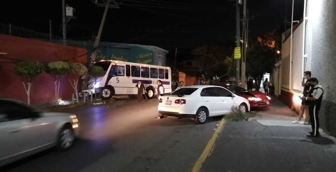 Al perder el control, el chofer de la unidad de pasajeros se fue a impactar contra un poste, mientras que el conductor del Bora blanco se estrelló contra el Stratus.