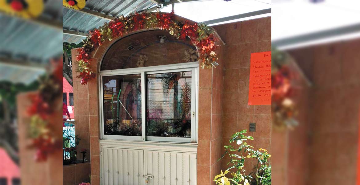 Vecinos de la Unidad Habitacional Ciudad Chapultepec colocaron una cartulina para informar que la imagen de San Juditas fue robada de la Ermita, la cual con la cooperación de los vecinos se fue construyendo y se le da mantenimiento.
