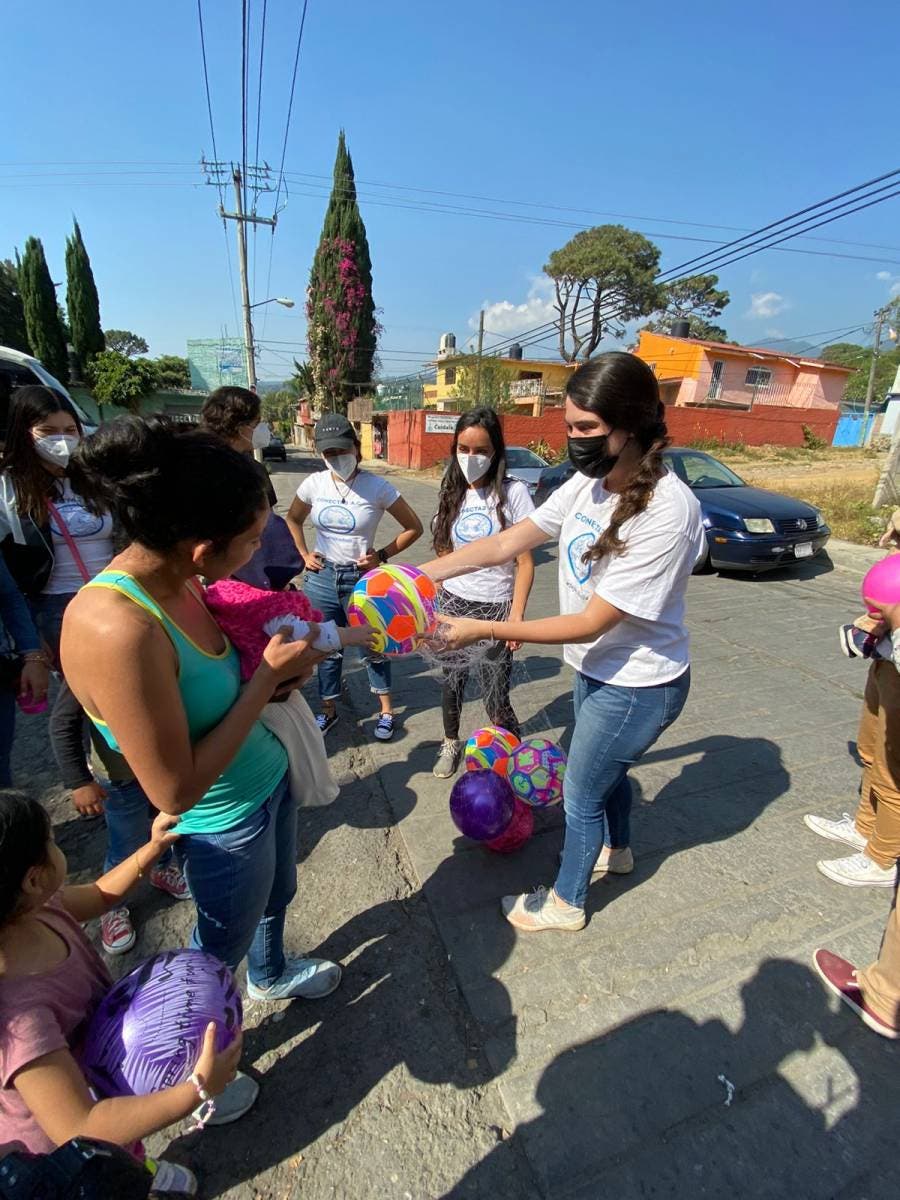 Integrantes de la Asociación Conecta2 A.C. reparten juguetes en diversas colonias del distrito uno.