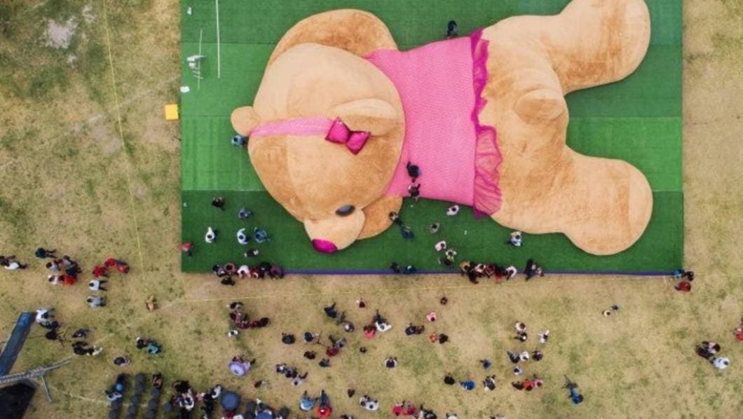 Su nombre es "Xonita", mide 20 metros de largo, pesa tres toneladas y es la osa de peluche más grande del mundo que ya forma parte del Libro de Récords Guiness.