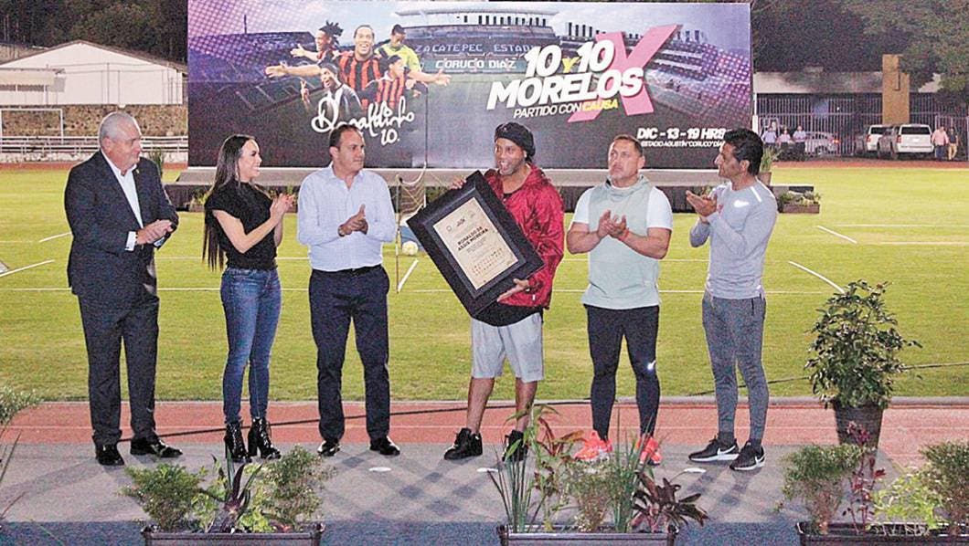 El brasileño recibió una placa en honor a su trayectoria y fue nombrado Embajador Honorífico y Ciudadano Morelense Distinguido, por la presidenta del DIF, Natalia Rezende Moreira y el mismo Cuauhtémoc Blanco.