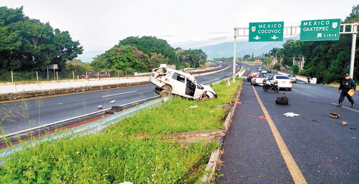 Fue a la altura de un conocido parque acuático, en Oaxtepec, en donde presuntamente debido al exceso de velocidad, el conductor perdió el control y volcó dando varias vueltas para quedar encima del muro de contención.