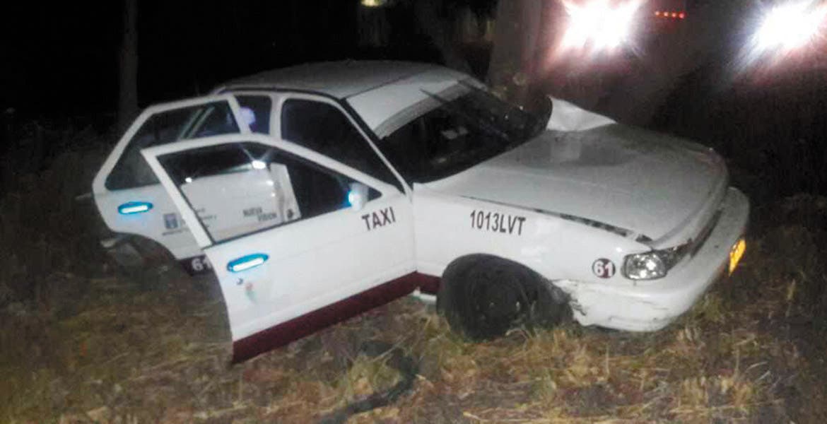 Mauro, de 47 años, resultó herido al chocar su taxi Nissan-Tsuru, número económico 61, placas 1013-LVT, contra un árbol, luego de que perdiera el control y se saliera del camino, cuando circulaba por la carretera federal Cuautla-Cuernavaca, a la altura de La Calera, en Yautepec, por lo que elementos de la Policía Federal (PF) División Caminos tomaron conocimiento del percance.