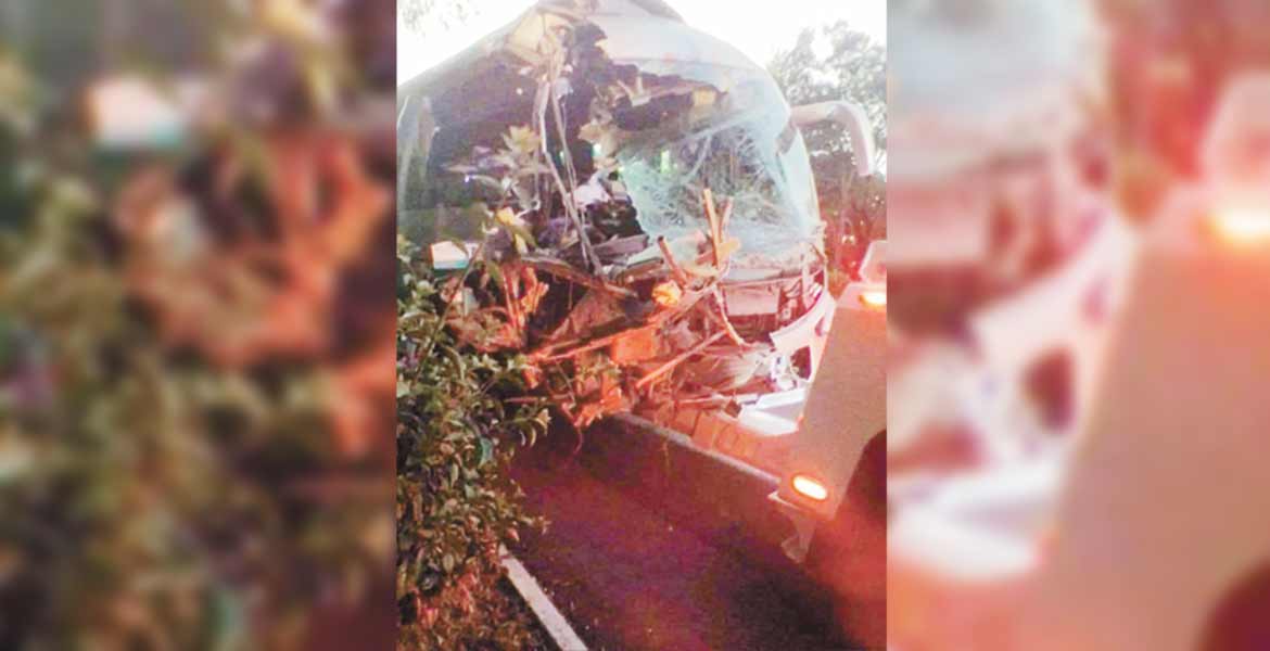 Al momento del percance el autobús quedó con el frente destrozado, resultando una pasajera lesionada.