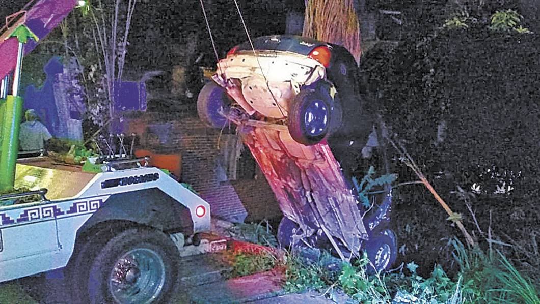 Rescate. Un policía cayó en su auto a una barranca en Palmira.