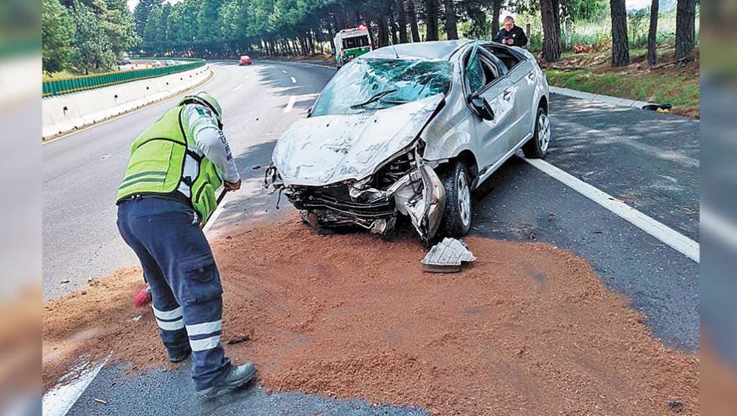 Un hombre resultó lesionado al volcar su auto, tras perder el control cuando transitaba por la autopista México–Cuernavaca, a la altura de Fierro del Toro, en Huitzilac.