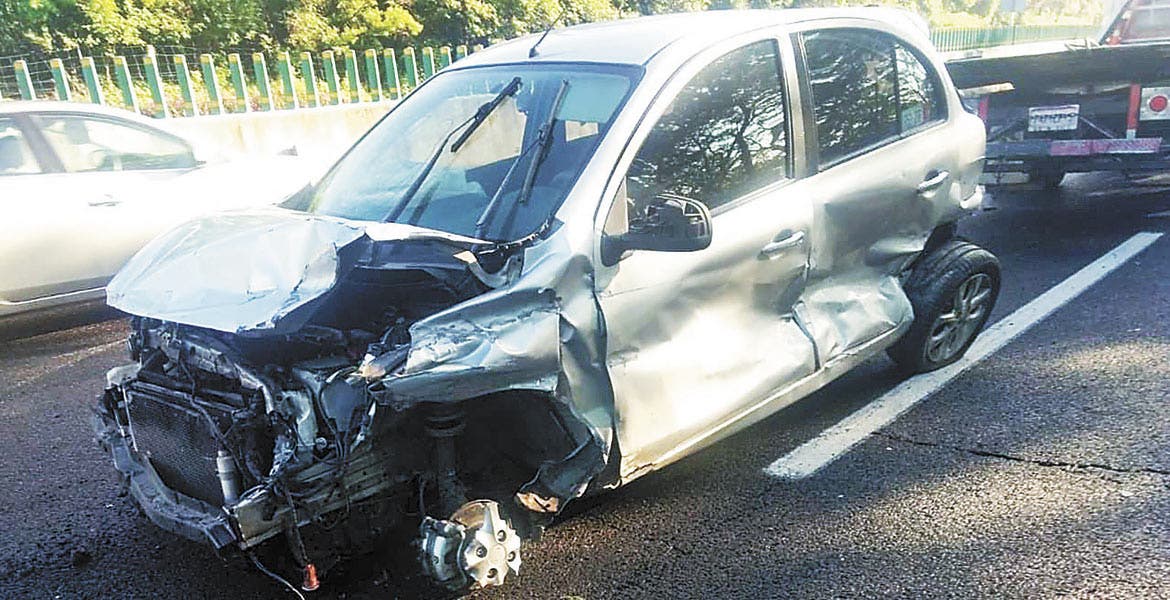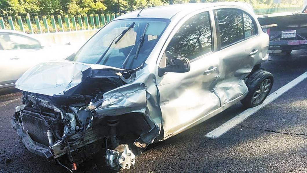 Posteriormente, a la altura del poblado de Chamilpa, un auto Nissan-March, terminó destrozado tras chocar contra un paredón de tierra, luego de que su conductor perdiera el control, presuntamente debido al exceso de velocidad.