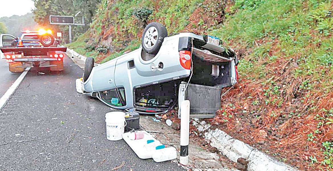 Fue al salir de una de las curvas del kilómetro 73, poco antes del poblado de Chamilpa, en donde el conductor perdió el control de la camioneta y se impactó contra el muro central de contención.