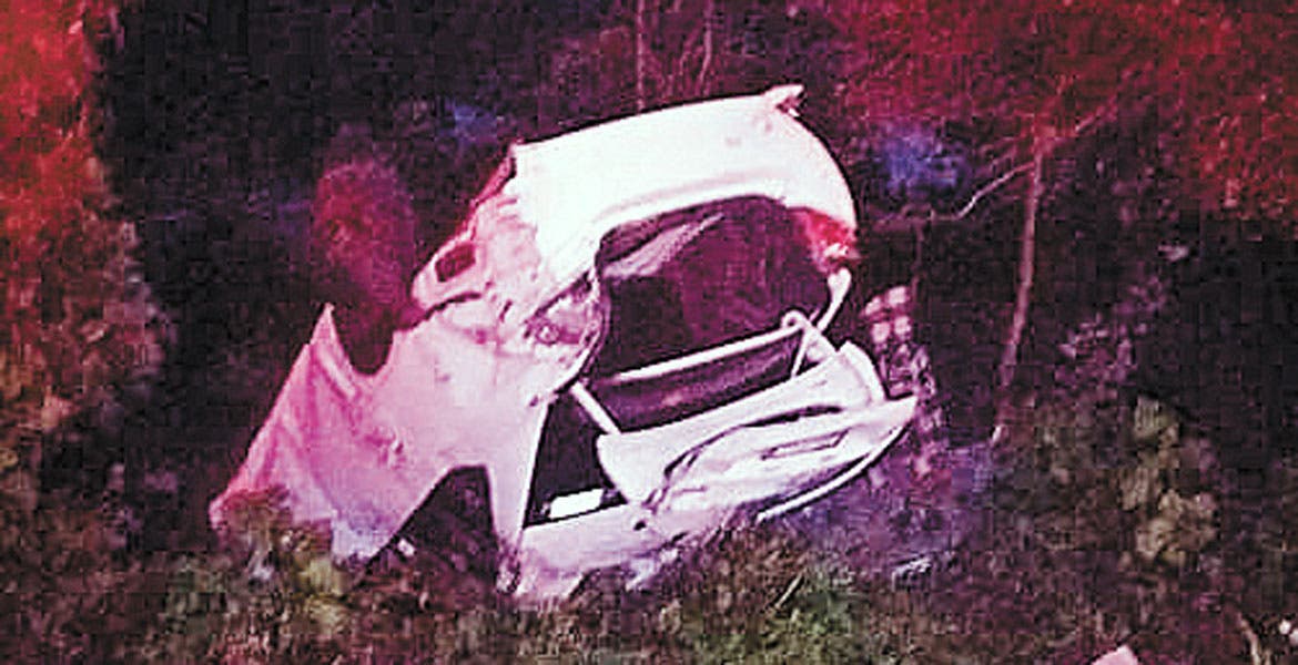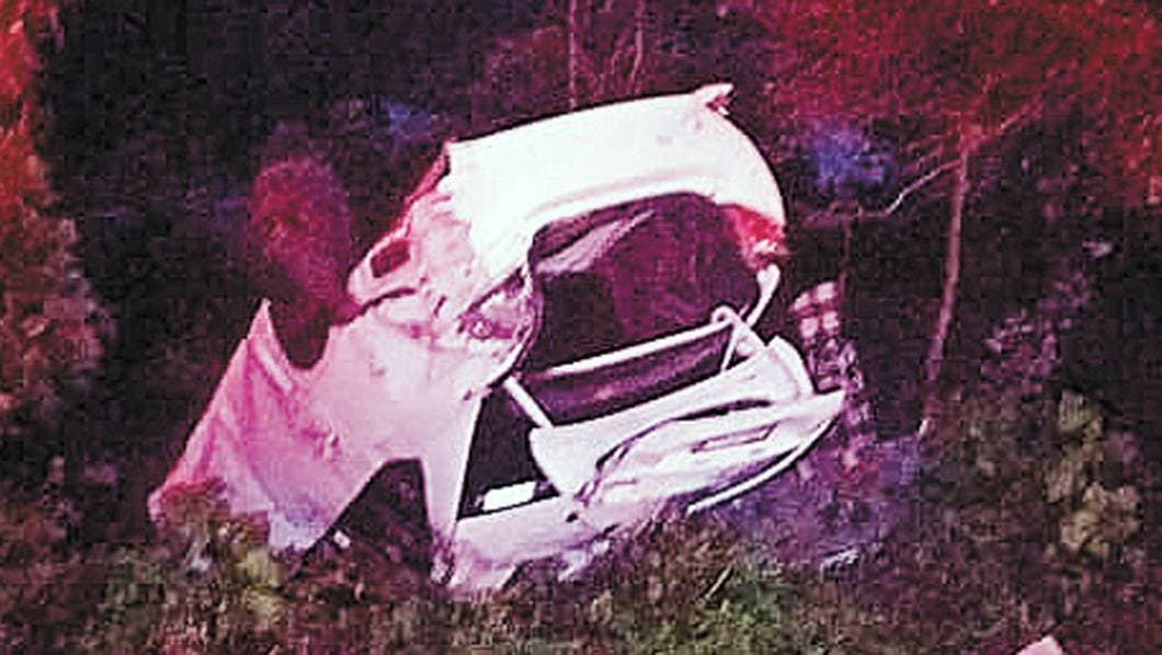 Accidente. Así quedó el auto tras salirse del camino y volcar en Huitzilac, resultando dos personas lesionadas.