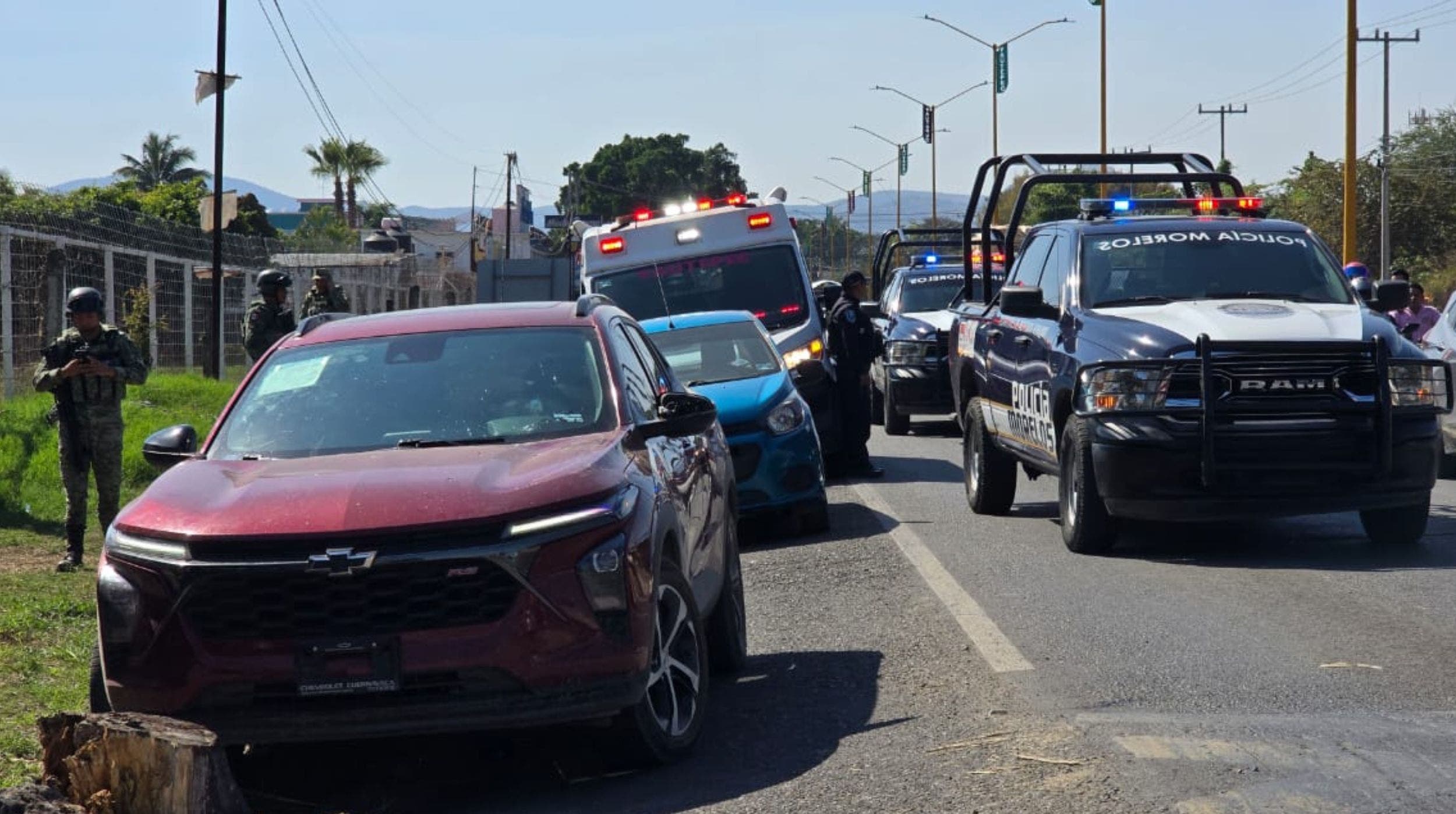 Al filo de las 14:30 horas autoridades fueron alertadas de un ataque armado en contra de una camioneta roja que circulaba sobre la carretera federal Cuautla-Cuernavaca.