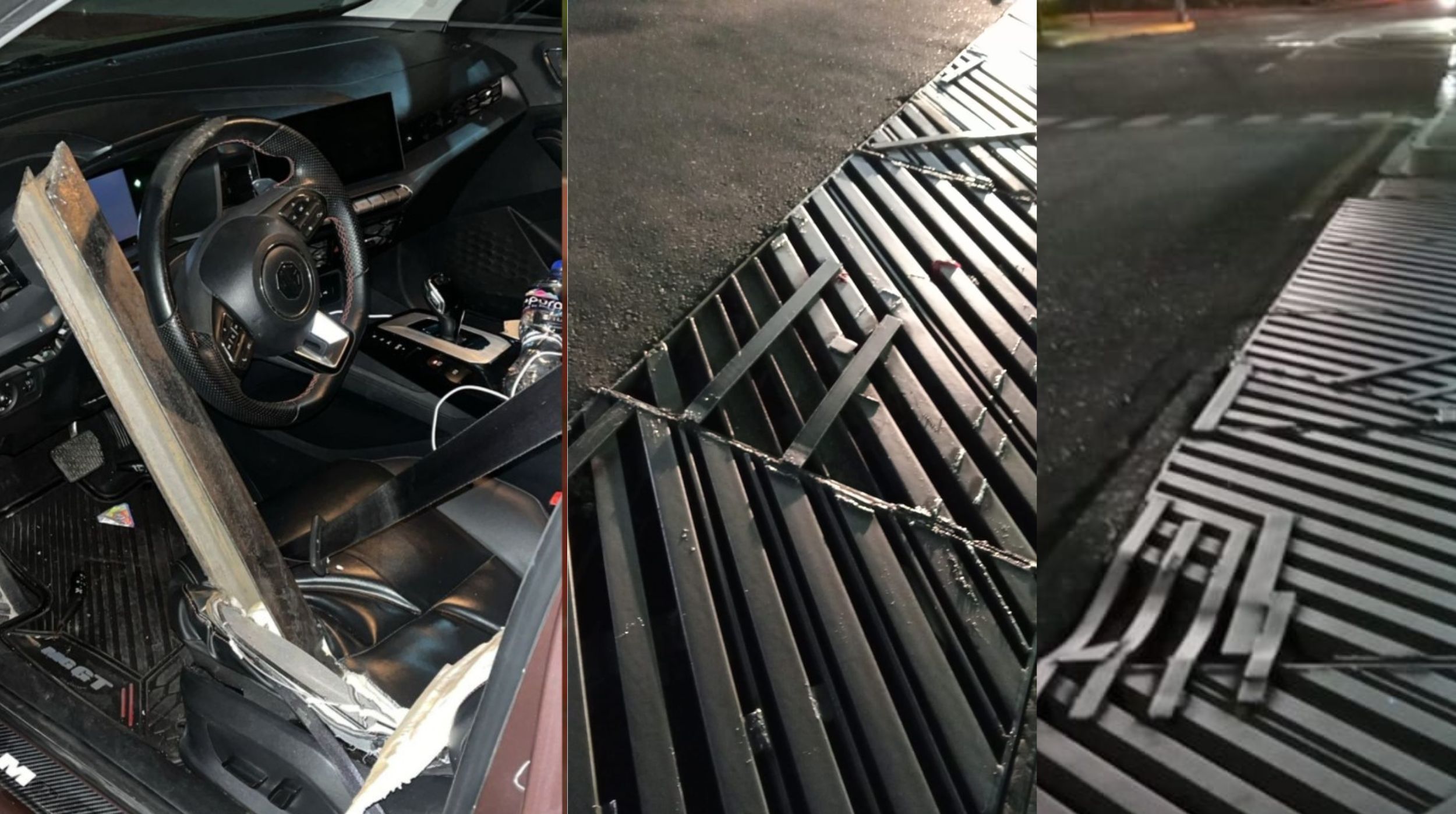 El incidente se registró alrededor de las 21:40 horas en el cruce de avenida Diana y la autopista México-Acapulco, a la altura de la glorieta frente a plazas comerciales. Al pasar sobre la coladera, una viga metálica se desprendió y atravesó el automóvil del lado del conductor.