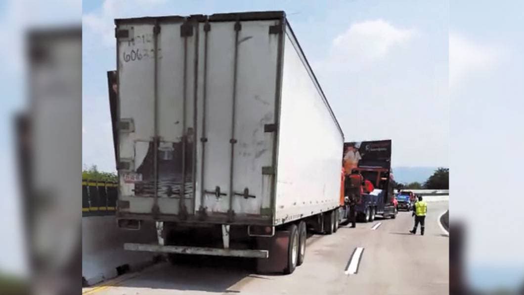 Al quedarse sin frenos mientras transitaba hacia el sur por el Paso Express, un trailero recargó su tractocamión a lo largo de varios metros contra los muros de contención de los carriles centrales para detener su marcha a la altura de la colonia Milpillas, de Cuernavaca.