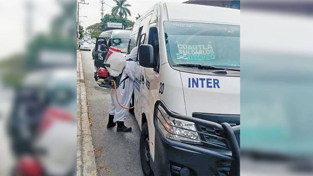 Personal de la Secretaría de Movilidad y Transporte del gobierno, implementaron la mañana del martes un operativo en la ciudad de Cuautla, para sanitizar unidades del servicio público.
