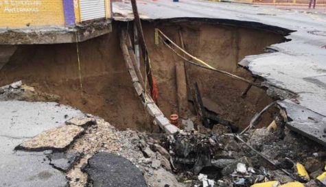 Protección Civil Municipal informó que este hundimiento de aproximadamente 20 metros de diámetro, se generó tras la ruptura de una tubería de agua que cuenta con 50 años de antigüedad.