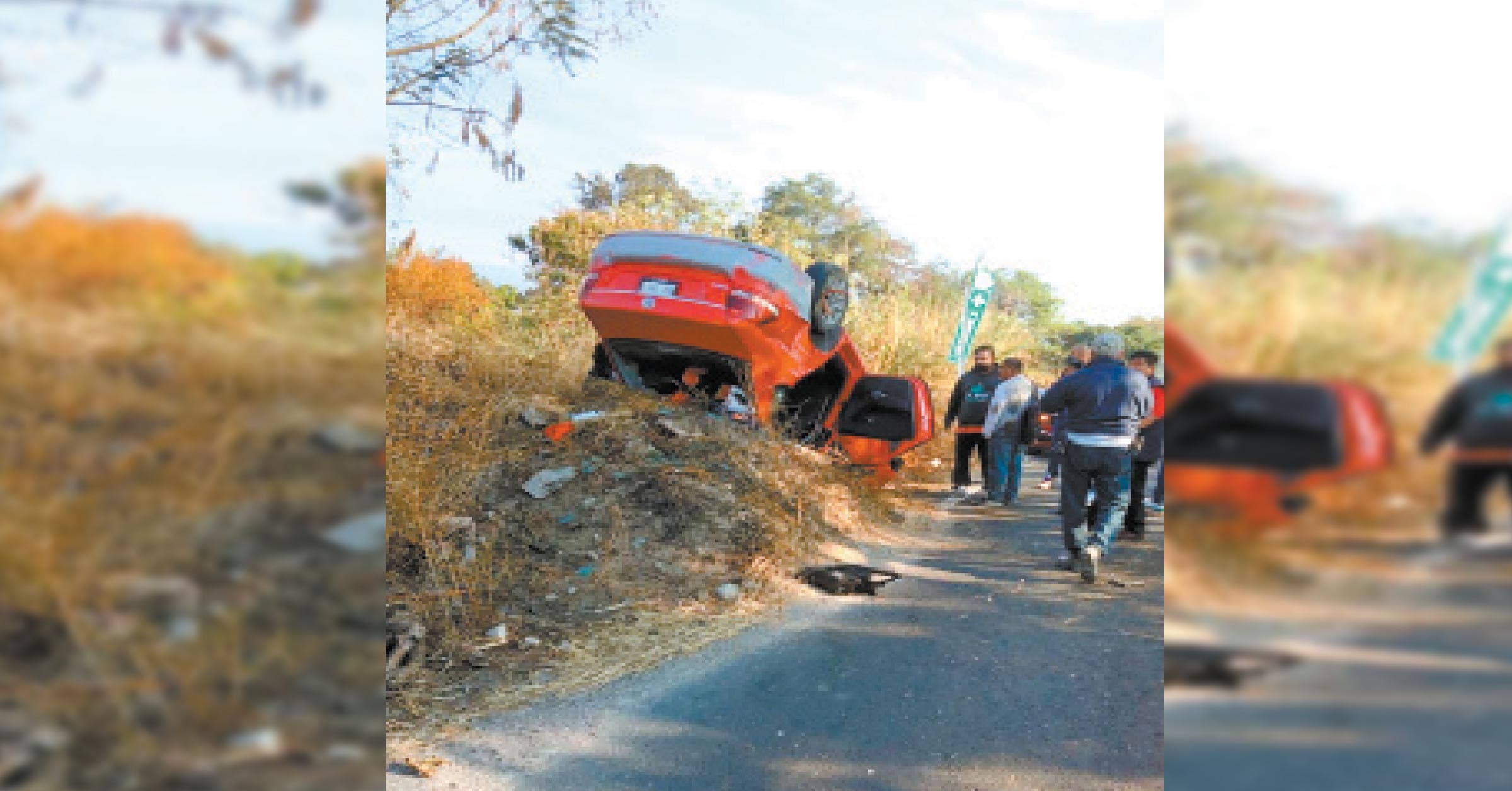 Eran casi las 09:00 horas cuando vecinos de la zona reportaron al 911 que un automóvil Vento, color rojo, se había volcado sobre el Libramiento de Yautepec.