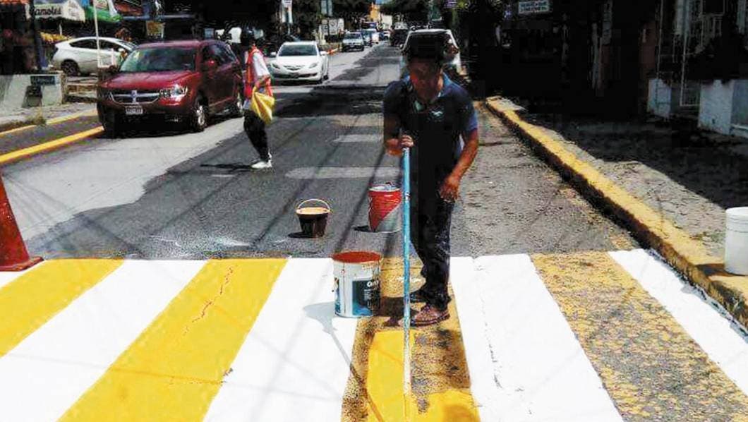 Trabajadores de la Secretaría de Infraestructura municipal balizaron y señalizaron los pasos peatonales, frente a 10 escuelas que se encuentran en puntos considerados con carga vehicular, con el objetivo de fortalecer la seguridad vial.