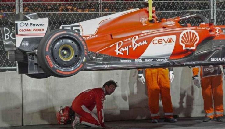 La carrera se detuvo cuando Carlos Sainz tuvo un fuerte contacto con una alcantarilla que se encontraba abierta a la mitad de la pista, el monoplaza se quedó parado en el circuito debido al contacto que tuvo, en el volante aparecía el mensaje de ‘engine off’, le que le obligaban a parar el motor y salir del coche.