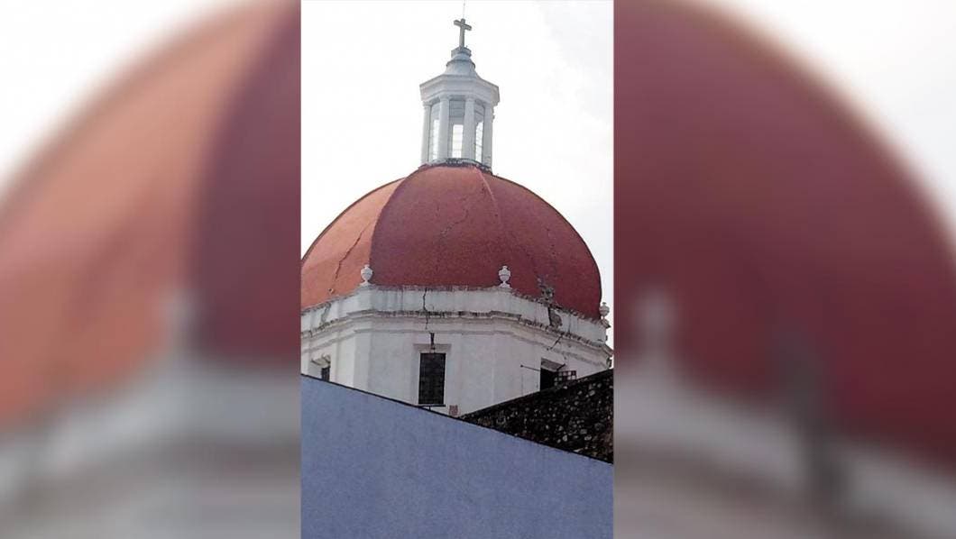 A consecuencia del temblor, la cúpula de la parroquía de Nuestra Señora de Guadalupe, en Cuernavaca, se cuarteó y quedó a punto de colapsar.
