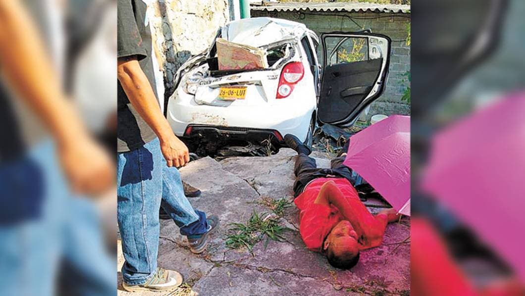 En el patio de una casa de la calle 20 de Noviembre, de la colonia Nueva Santa María, en Cuernavaca, quedó un taxi Spark, placas 2606-LUT, presuntamente tras quedarse sin frenos, resultando lesionado el trabajador del volante.
