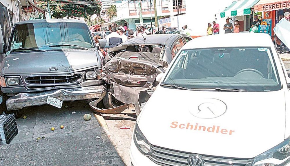 Tras subirse a la banqueta la camioneta impactó por atrás a un Versa estacionado, proyectándolo contra un Vento blanco parado.