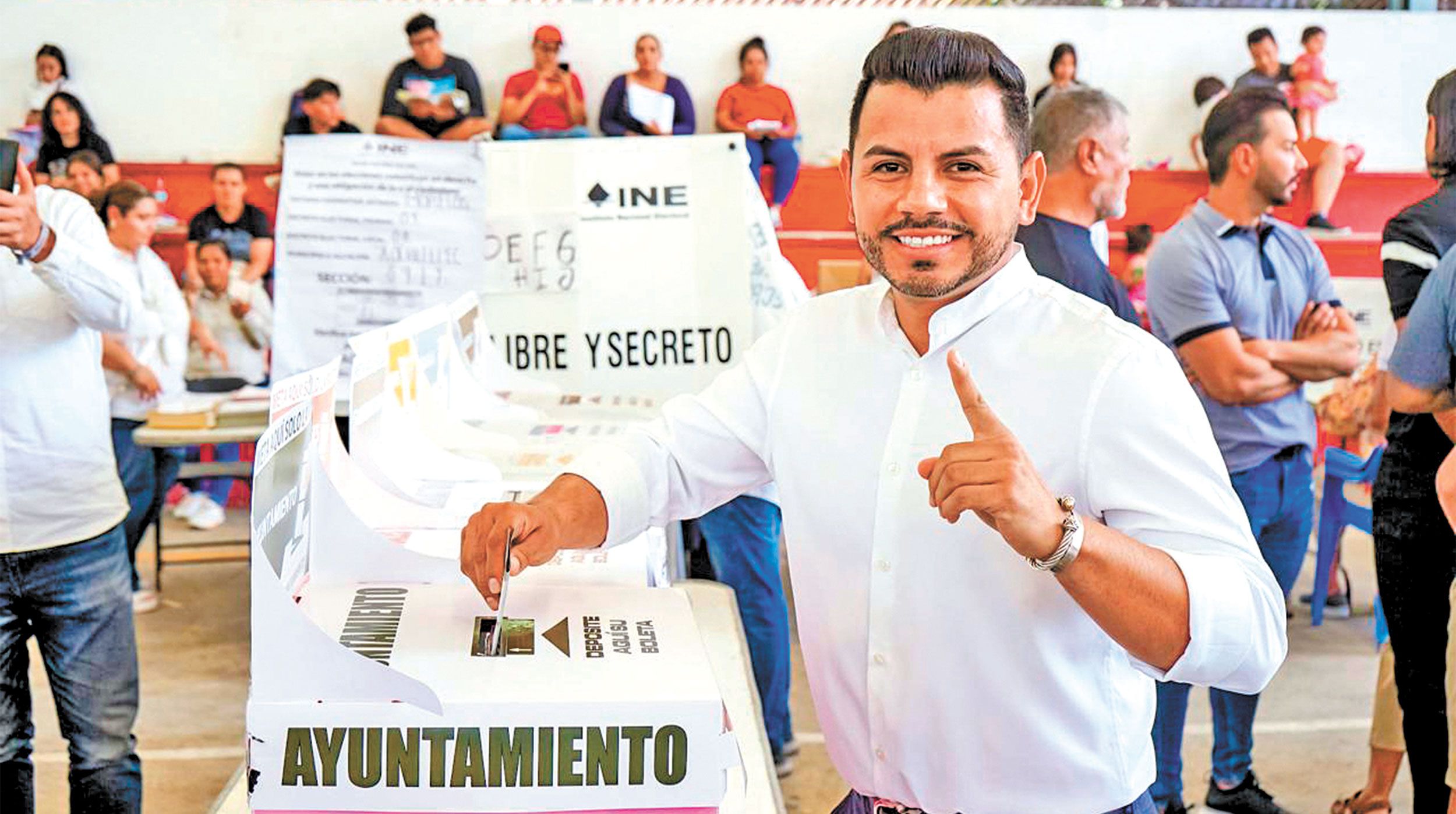 Roberto Gonzalo “Chalo” Flores, candidato a la Presidencia Municipal de Xochitepec, acudió en compañía de su familia a emitir su voto a la Unidad Deportiva Zempoala.