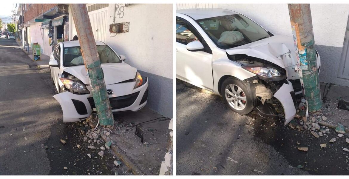 La mañana de este martes, el conductor de un auto provocó un accidente al chocar contra un poste en la calle 5 de Febrero, en Acapantzingo, Cuernavaca.