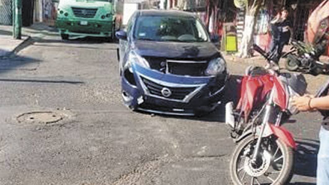 Un motociclista acabó lesionado al chocar contra un auto Nissan-Versa, color azul, en la esquina de las calles Francisco Leyva e Himno Nacional, de la colonia Miguel Hidalgo, en Cuernavaca, por lo que agentes de Tránsito tomaron conocimiento del percance.