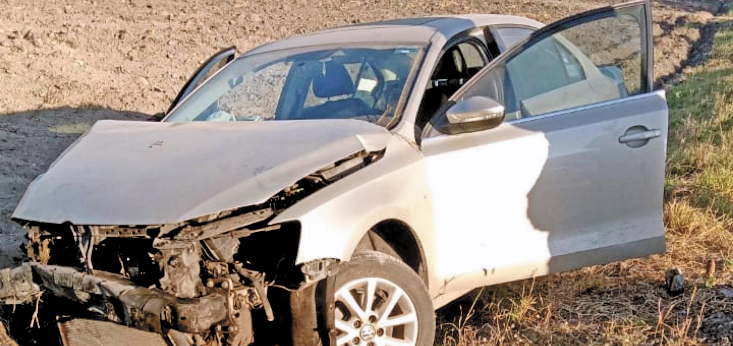 Chocó contra un muro y luego salió proyectada de la carretera; paramédicos la llevaron a un hospital cercano para valorarla.