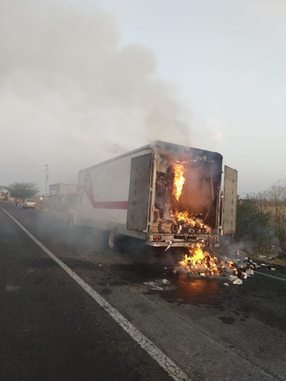 El incidente registró por una probable falla eléctrica, lo que ocasionó que inmediato el fuego se propagara debido a la carga del tráiler.