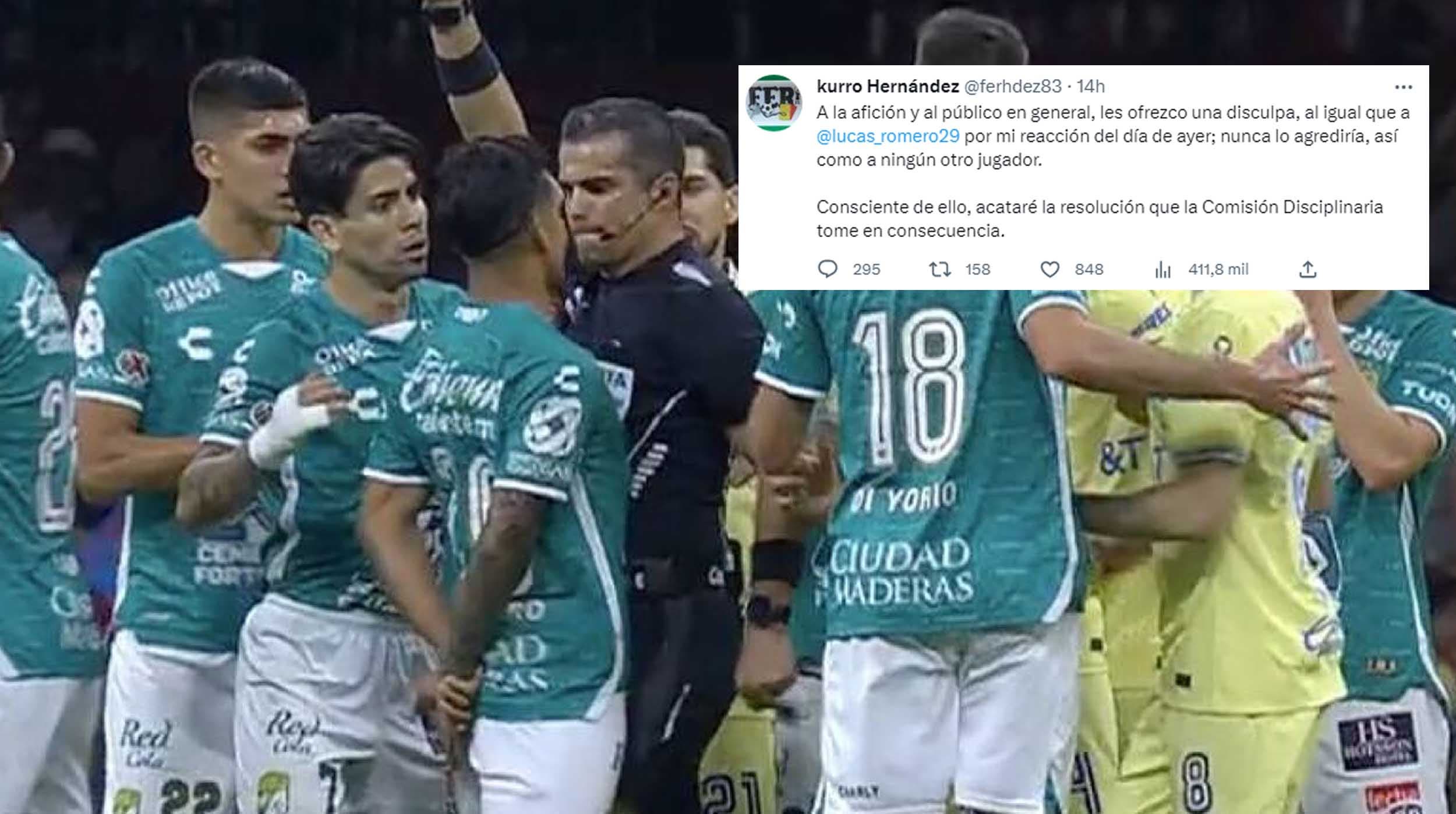 El silbante Fernando Hernández soltó un rodillazo al jugador Lucas Romero en el partido de León contra el América.