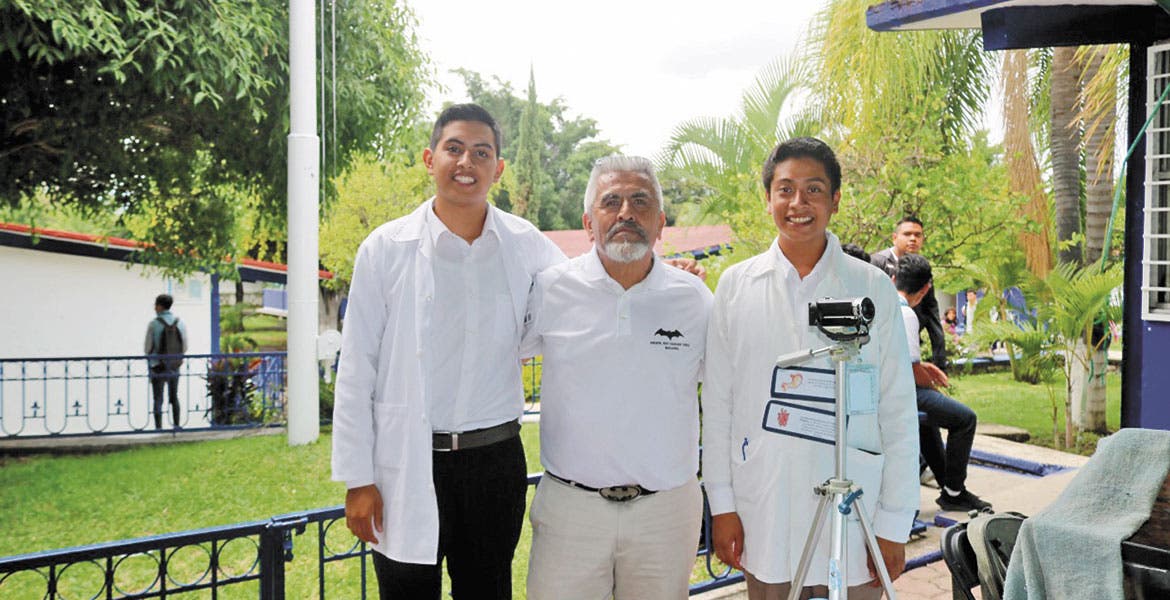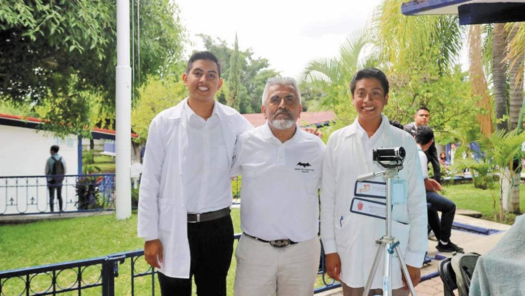 Los estudiantes Carlos Arturo Santana Pérez y Juan Nieto Reynoso, apoyados por el profesor Rodrigo Vargas Yáñez, participaron con dos proyectos en el área de biología.