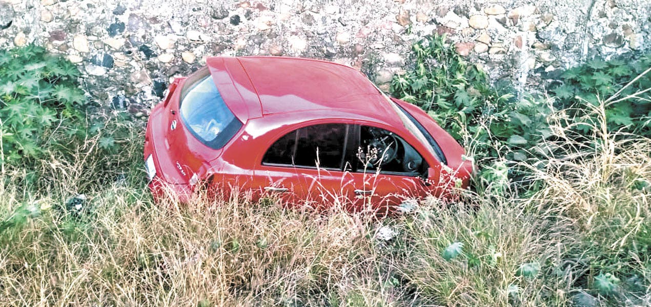 Por quedarse dormido al volante, un automovilista se salió del camino al circular por el Libramiento Oriente, a unos metros de la entrada a la colonia La Cartonera, de Yecapixtla, la mañana de ayer. Por suerte, Héctor, de 33 años, salió ileso del percance.