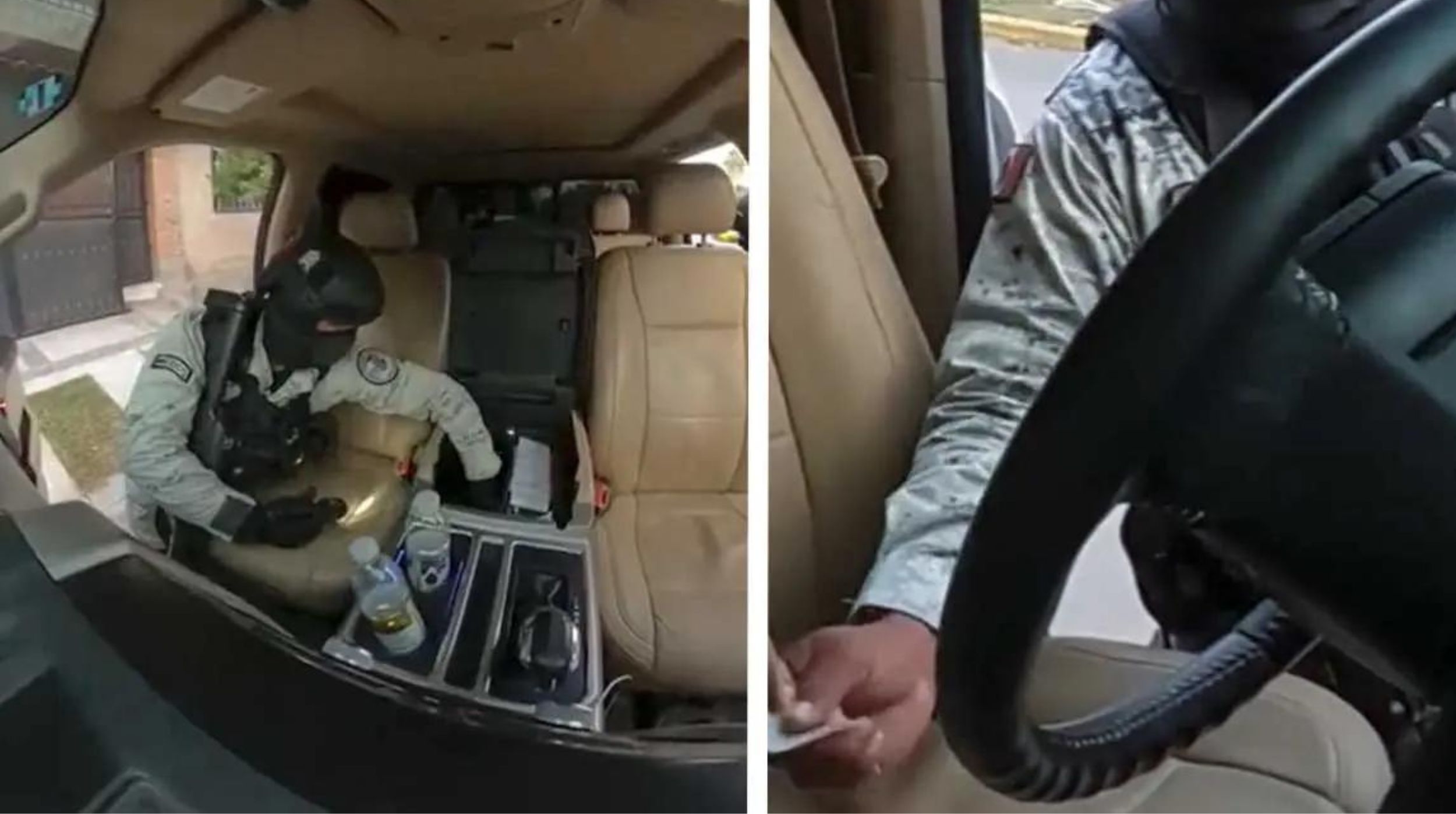 En el video también se puede observar a un guardia nacional registrar el vehículo del conductor y sacar unos audífonos de un compartimento, mismos que regresa a su lugar cuando se percata de la presencia de una cámara al interior de la camioneta.