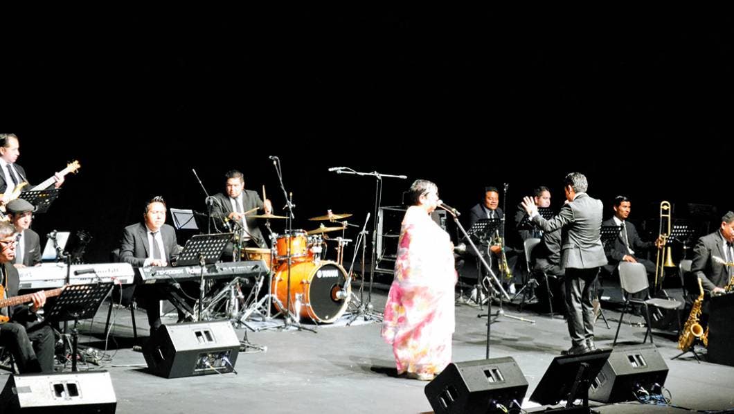 En punto de las 8 de la noche dio inicio un majestuoso espectáculo denominado “Concierto y tributo a José José y Frank Sinatra” con la Big Band Jazz de México, celebrando 20 años, bajo la batuta de Ernesto Ramos, director de la orquesta.
