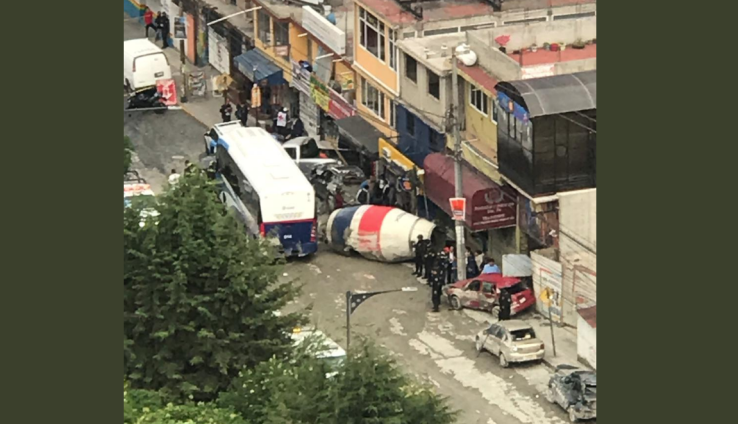 De acuerdo con los reportes, la revolvedora de la empresa de Cementos Mexicanos (Cemex) presentó una falla en el sistema de frenado, lo que provocó que se impactara por la parte posterior de un autobús, provocando que volcara y se saliera la olla donde almacena el cemento, la cual se desprendió del chasis y golpeó al resto de los vehículos.