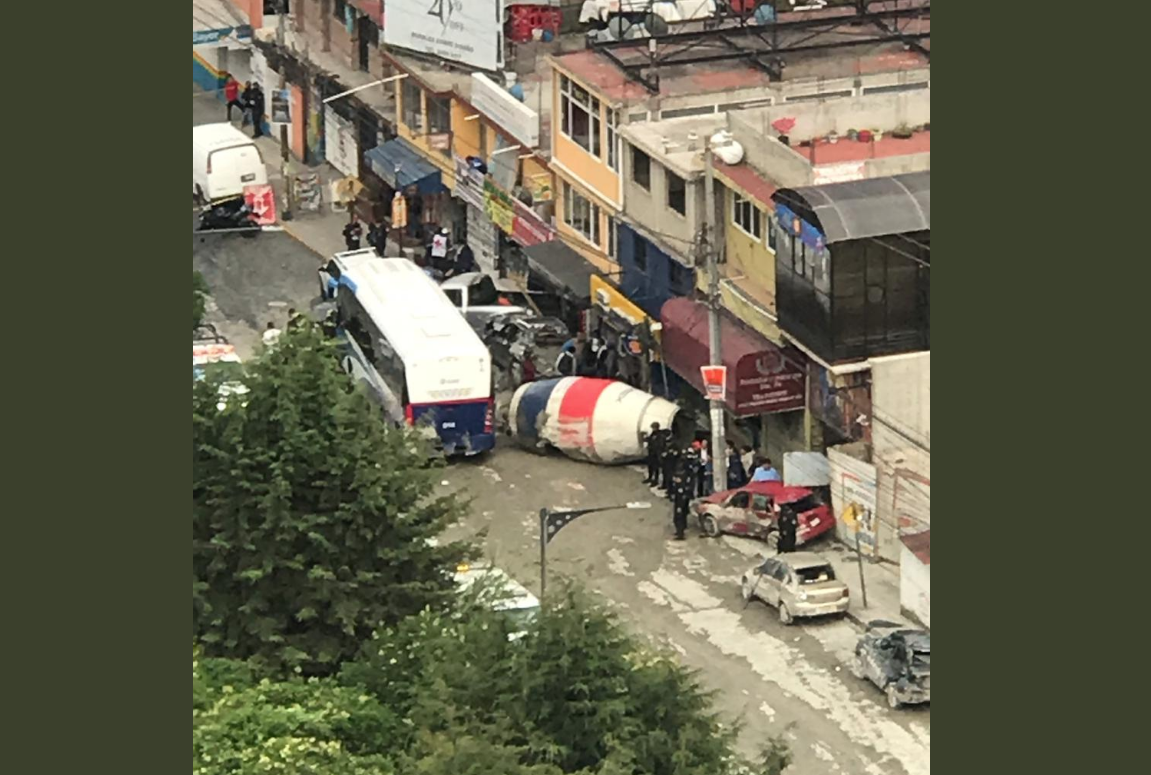 De acuerdo con los reportes, la revolvedora de la empresa de Cementos Mexicanos (Cemex) presentó una falla en el sistema de frenado, lo que provocó que se impactara por la parte posterior de un autobús, provocando que volcara y se saliera la olla donde almacena el cemento, la cual se desprendió del chasis y golpeó al resto de los vehículos.