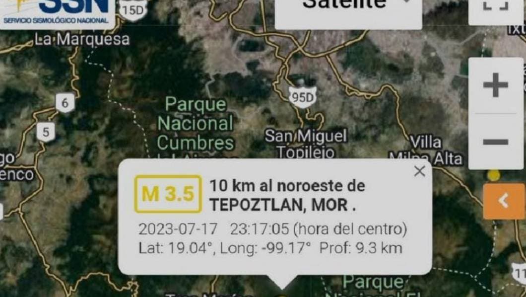 La noche del lunes se registró un sismo de magnitud 3,5 con epicentro en Tepoztlán.