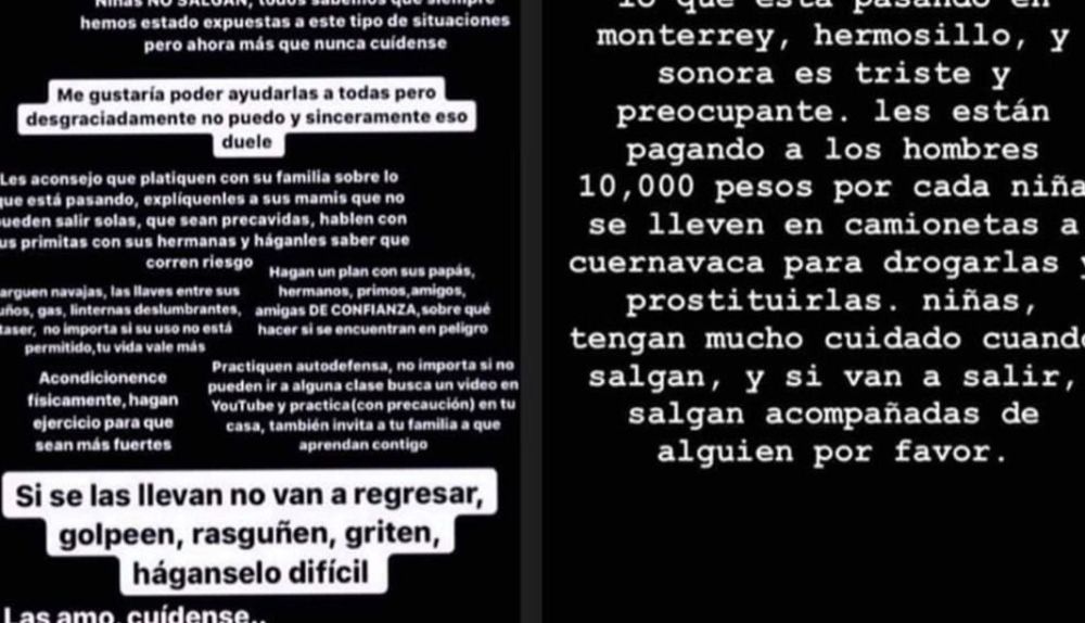 En redes sociales, videos comenzaron a difundirse donde se indica que sujetos secuestran jovencitas en Sonora y Nuevo León, para traerlas a Cuernavaca, donde las obligan a prostituirse. Sin tener casos concretos, o denuncias pic.twitter.com/uh012gAMvH