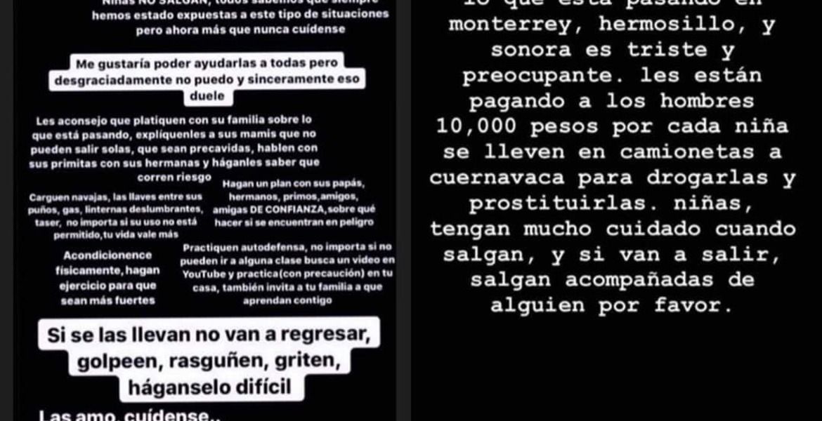 En redes sociales se han viralizado audios en las que tanto un hombre como una joven relatan sobre supuestos secuestros de mujeres con fines de prostitución desde Ciudad Obregón, Sonora, Monterrey, Nuevo León y Baja California, entre otros, hacia Cuernavaca.