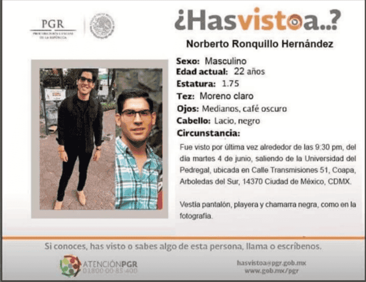 Norberto Ronquillo debería de haber festejado su graduación en la noche del jueves, el joven era estudiante de la carrera de Mercadotecnia en la Universidad del Pedregal y fue secuestrado.