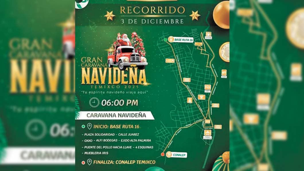El Ayun­ta­miento anun­ció el ini­cio de su Gran Cara­vana Navi­deña Temixco 2025 bajo el lema “Tu espí­ritu navi­deño viaja aquí”, invi­tando a las fami­lias a ser parte de esta cele­bra­ción.