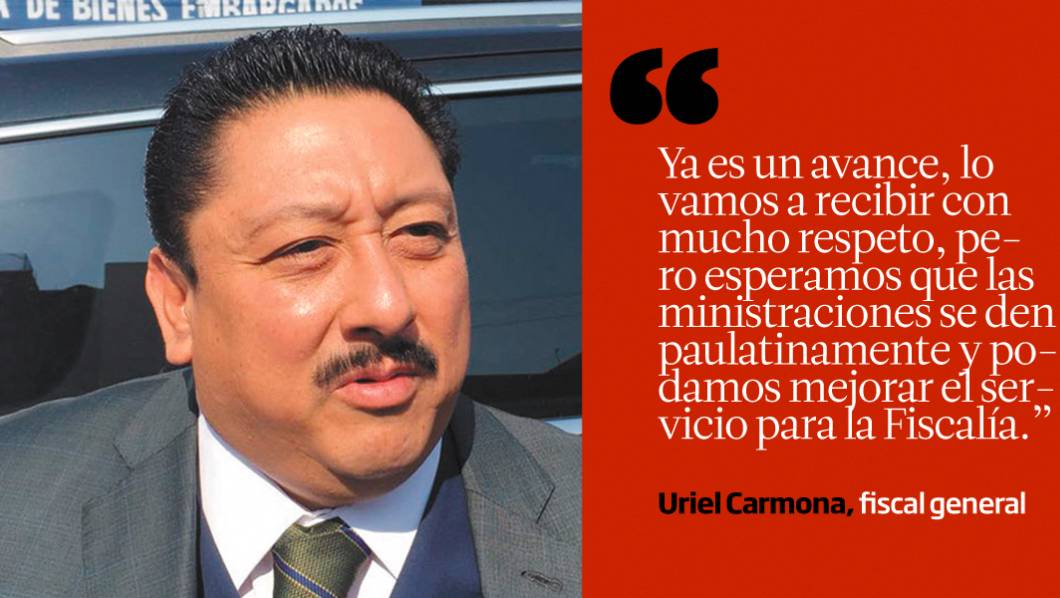 "Ya es un avance, lo vamos a recibir con mucho respeto, pero esperamos que las ministraciones se den paulatinamente y podamos mejorar el servicio para la Fiscalía.” Uriel Carmona, fiscal general